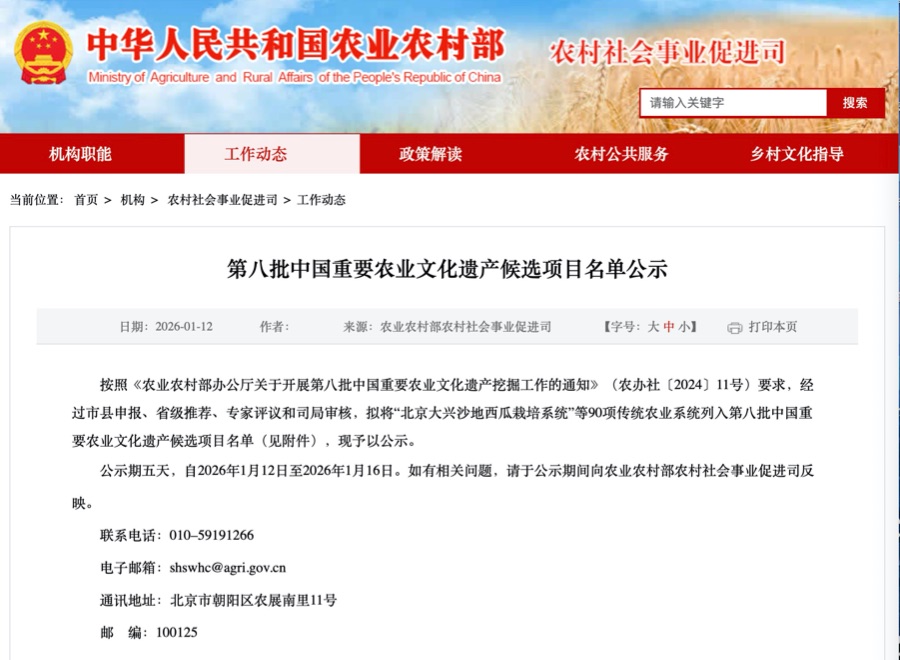 1月12日广瑞网 ,农业农村部发布第八批90项中国重要农业文化遗产候选项目名单公示,经过市县申报、省级推荐、专家评议和司局审核,拟将90项传统农业系统列入第八批中国重要农业文化遗产候选项目名单。其中,广东4项传统农业系统入选,即东莞土沉香栽培与莞香文化系统、汕尾晨洲蚝养殖系统、连山梯田系统和化州化橘红种植系统。